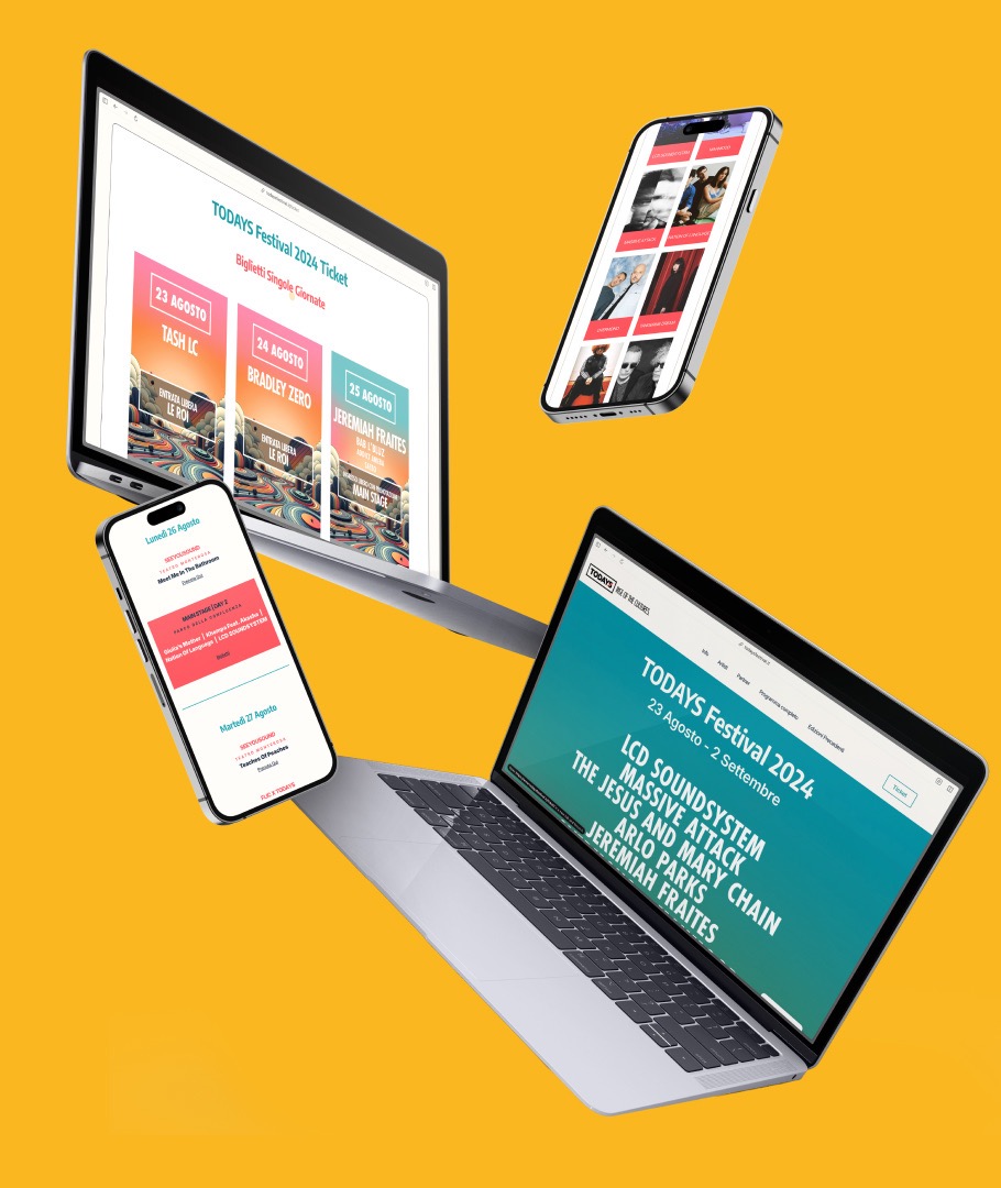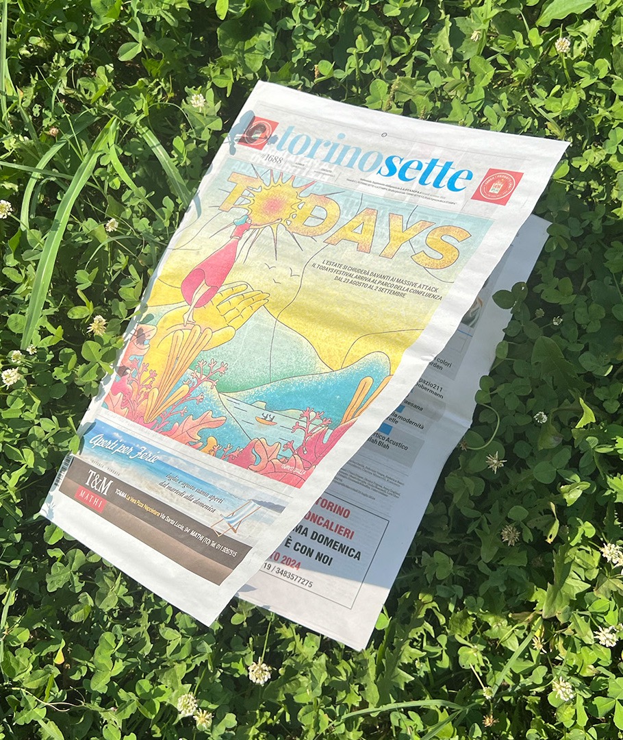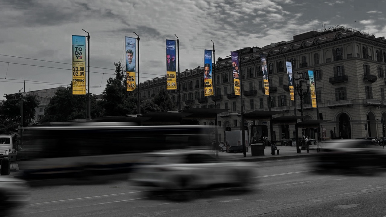 La stagione 2024 del Festival TODAYS ha alla base un cambio di direzione e un cambio di location che, in un modo o nell’altro, andavano inserite all’interno della comunicazione. Colori sgargianti, font pesanti e un prorompente contrasto di colori sono stati gli elementi attorno ai quali abbiamo strutturato la comunicazione del festival di fine estate della città di Torino.